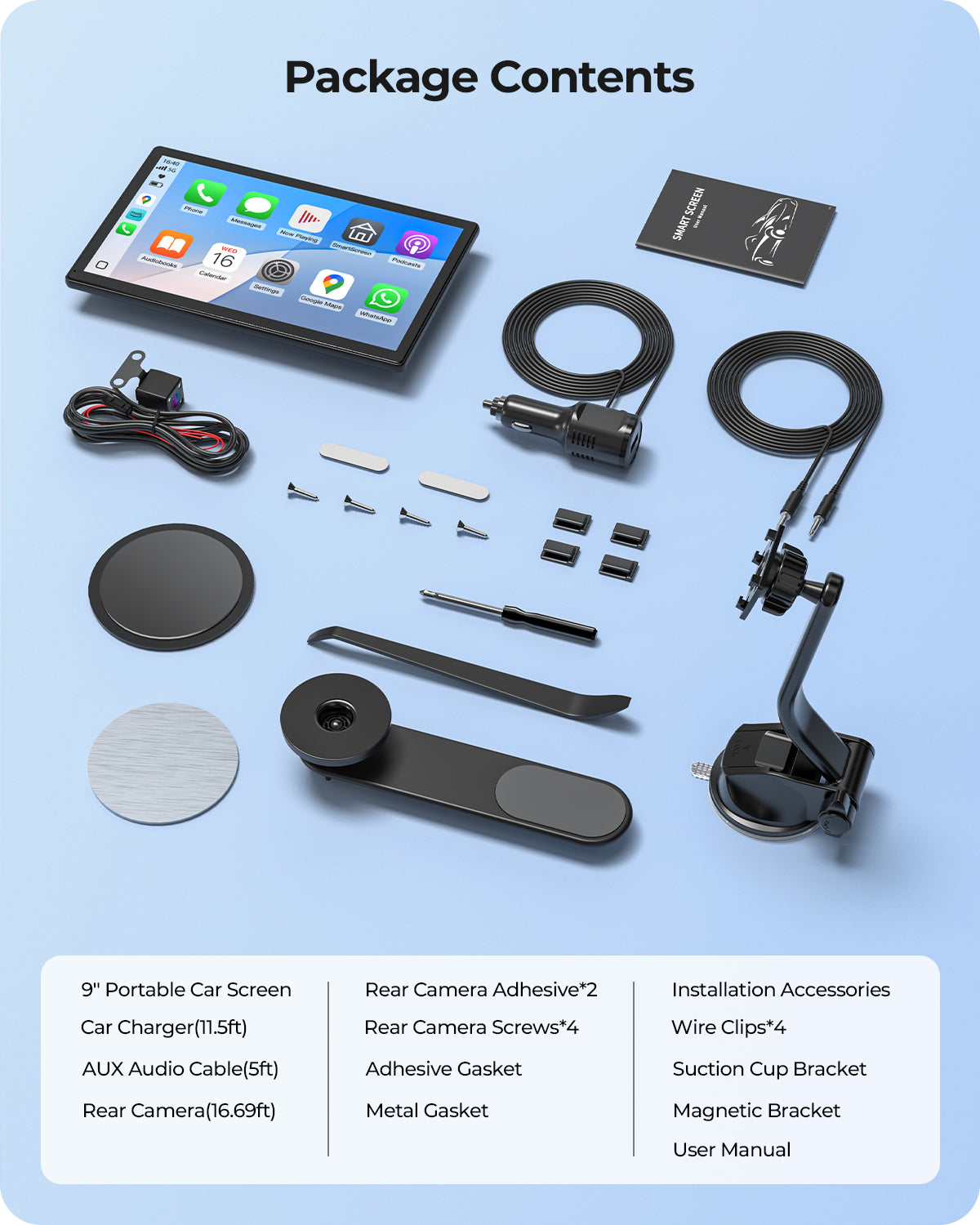 Krunia RC07 9 Inch Carplay/Android Auto Screen for Car