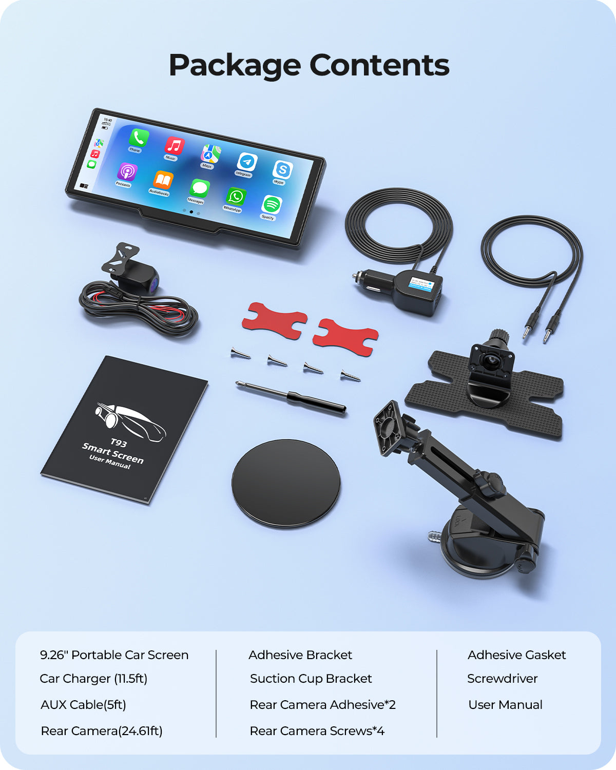 Krunia T93 9.26 Inch Carplay/Android Auto Screen for Car with Dash Cam